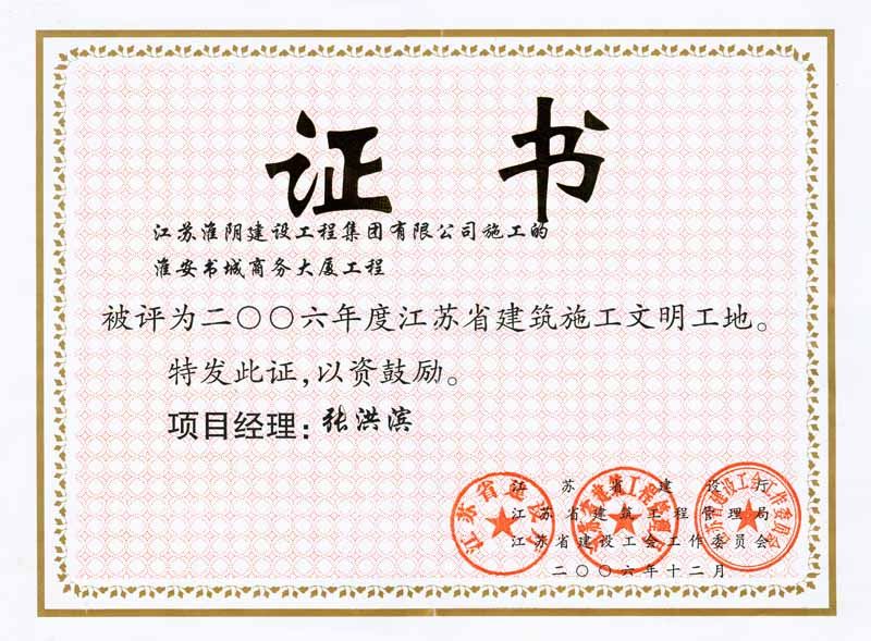 2006年省级建筑施工淮安书城商务大厦工程-张洪滨