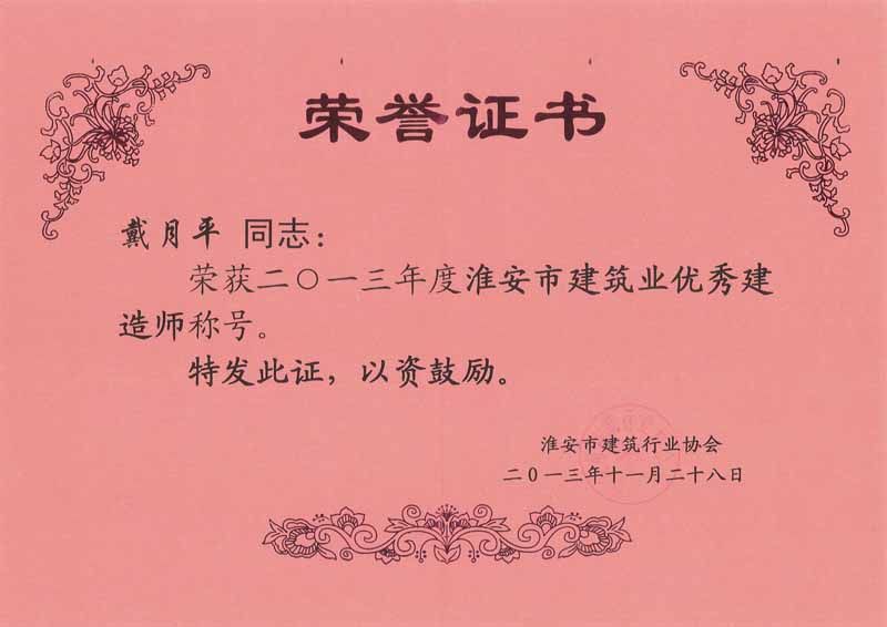 2013年度淮安市建筑业优秀建造师-戴月平