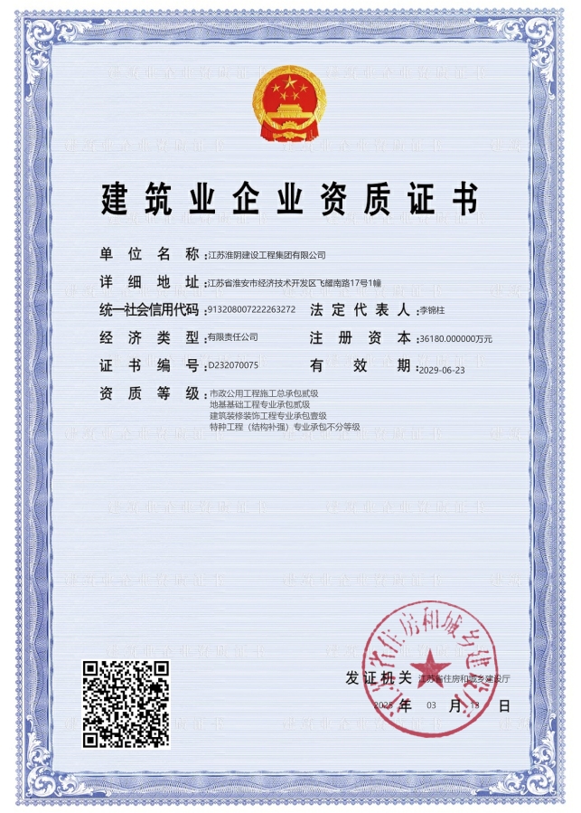 市政公用工程施工总承包、建筑装修装饰工程专业承包壹级及地基基
