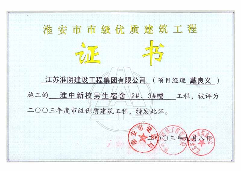 2003年市级优质工程淮中新校男生宿舍2#3#楼(戴良义)