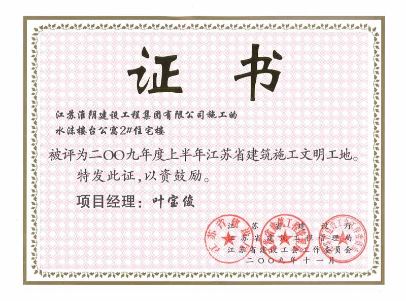 2009年省文明工地水沐楼台公寓2#住宅楼-叶宝俊