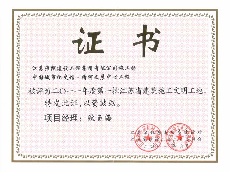 2011年省建筑文明工地中国城市化史馆·清河文展中心工程