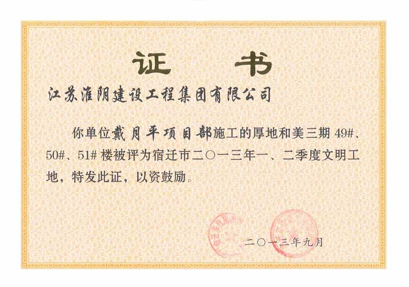 2013年宿迁市文明工地厚地和美三期49 50 51#楼-戴月平(文明工地)