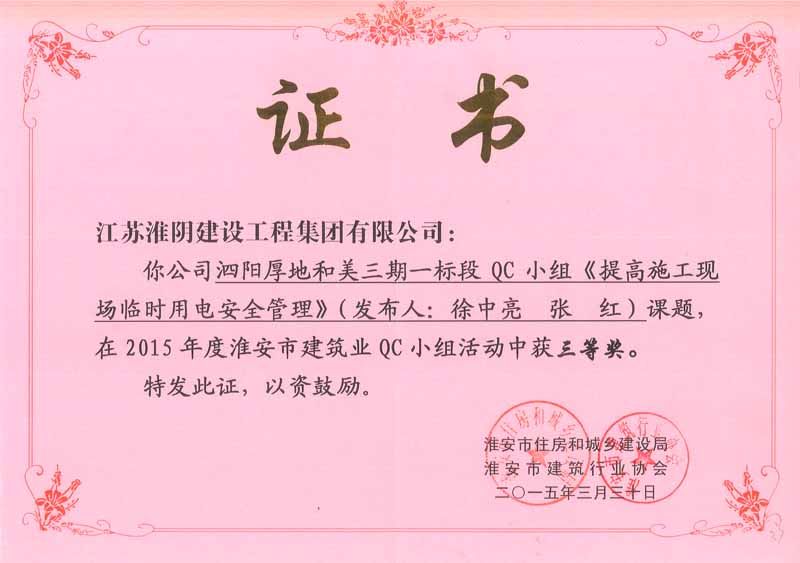 2015年市QC泗阳厚地和美三期一标段-三等奖(徐中亮、张红)