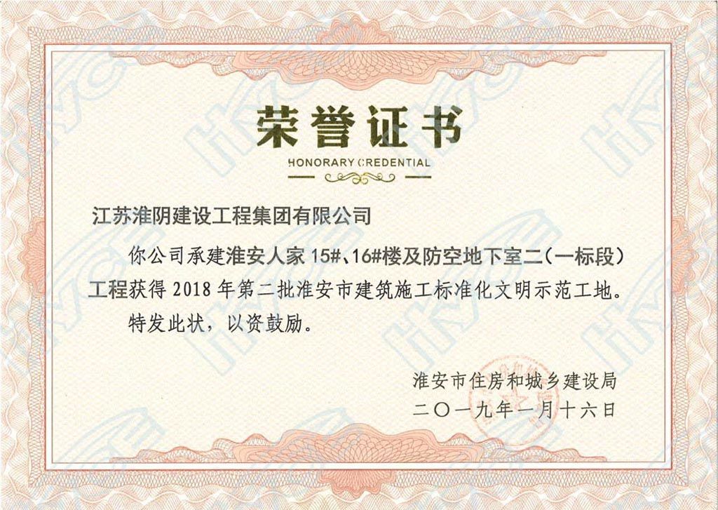 淮安市建筑施工标准化文明示范工地-淮安人家15#、16#楼及防空地下室二(一标段)