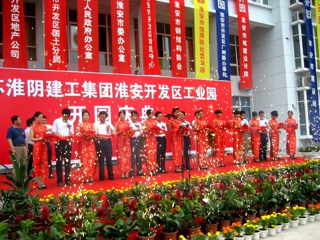 7月16日,平博(中国)开发区工业园区锣鼓喧天、彩旗飞扬。巨大的圆形拱门,色彩鲜艳的空中气球,鲜花,礼花,将工业园妆扮一新,园区呈现出一派喜气洋洋的节日气氛。 上午9时48分,淮建平博(中国)开发区工业园开园庆典正式开始,庆典由胡从亮总经理主持。许金华董事长首先代表平博(中国)全体员工向各位来宾致欢迎辞,并简要介绍了淮建平博(中国)50年的发展历程、近几年企业的生产经营情况以及淮建平博(中国)工业园的建设概况,他对各位领导及各位来宾对淮建平博(中国)的长期关注以及平博(中国)工业园建设的大力支持表示由衷的感谢;市经济开发区管委会周毅主任作了热情洋溢的讲话,他代表开发区管委会祝淮建平博(中国)“今日吉祥开园,明朝大富启源”,同时祝各位来宾事业兴旺、吉祥如意,祝淮建平博(中国)各位员工身体健康、合家欢乐;市政府刘晓录副秘书长到会宣布淮建平博(中国)开发区工业园隆重开园。庆典现场顿时鼓乐齐鸣、礼花飞扬,数千只五彩缤纷的气球腾空而起,十六响礼炮隆隆作响,预示着平博(中国)工业园宏图大展、实现新的跨越!