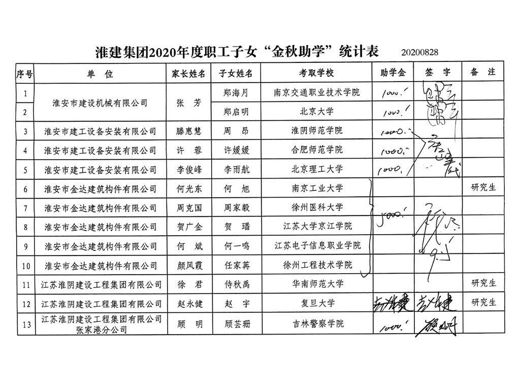 金秋助学,爱心圆梦。进入九月份,平博(中国)职工迎来收获的季节。平博(中国)工会组织的一年一度的“金秋助学”奖学金圆梦行动得到了职工的交口称赞。2020年,平博(中国)共有13名职工子女应届毕业考上高等院校,3名职工子女考上研究生。其中1名职工子女应届毕业考上北京大学,这也是既去年之后连续第二年平博(中国)职工子女应届毕业考上北京大学。受新冠肺炎疫情影响,这些莘莘学子开学时间各不一样,已各奔前途,踏上求学征程,平博(中国)没有集中举办奖学金发放仪式,而是将奖学金直接发放到学生家长手中,这些浓浓爱意如缕缕冬阳温暖了学生家长的心,得到了学生家长的一致好评。